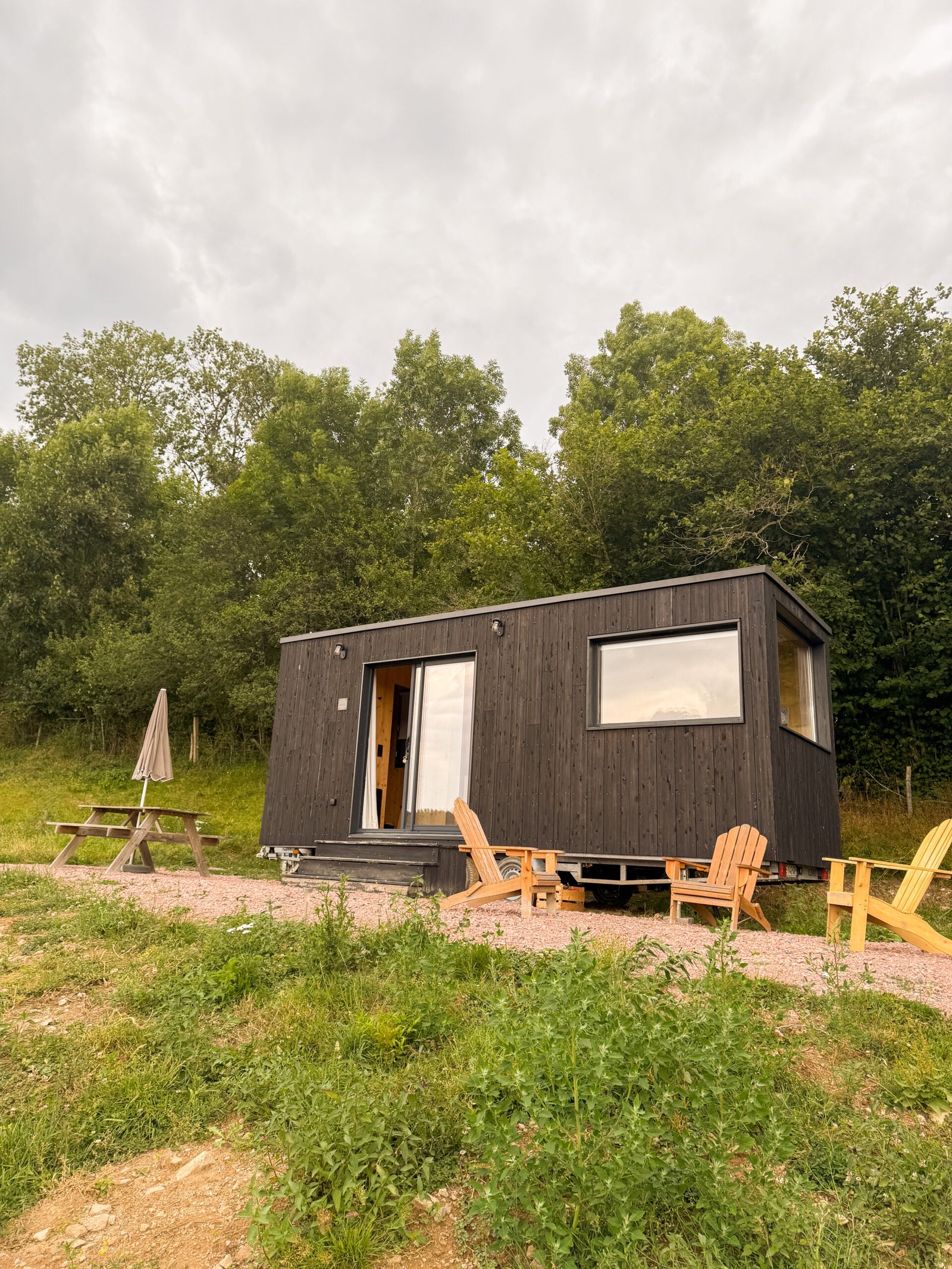 Nous sommes arrivés le samedi après-midi, posés tranquillement, avec un bon livre et une partie de molkky. En fond sonore ? Une cassette de Dirty Dancing, glissée dans le lecteur vintage de la tiny. L’ambiance parfaite, un peu hors du temps.