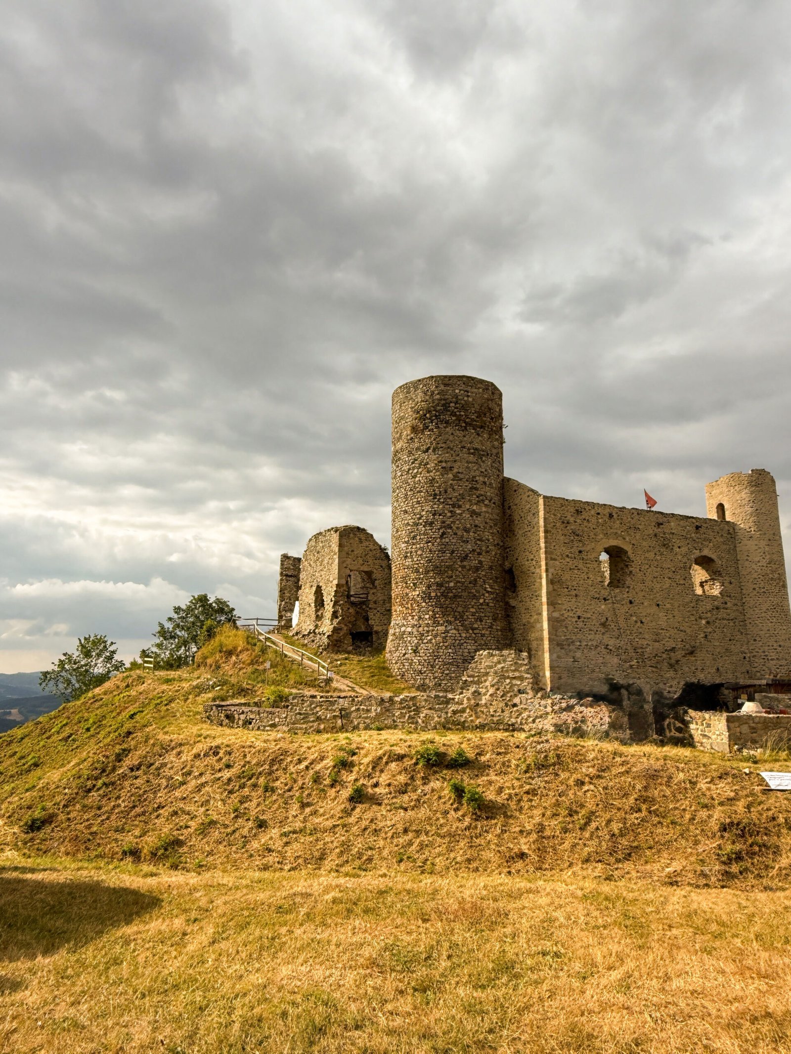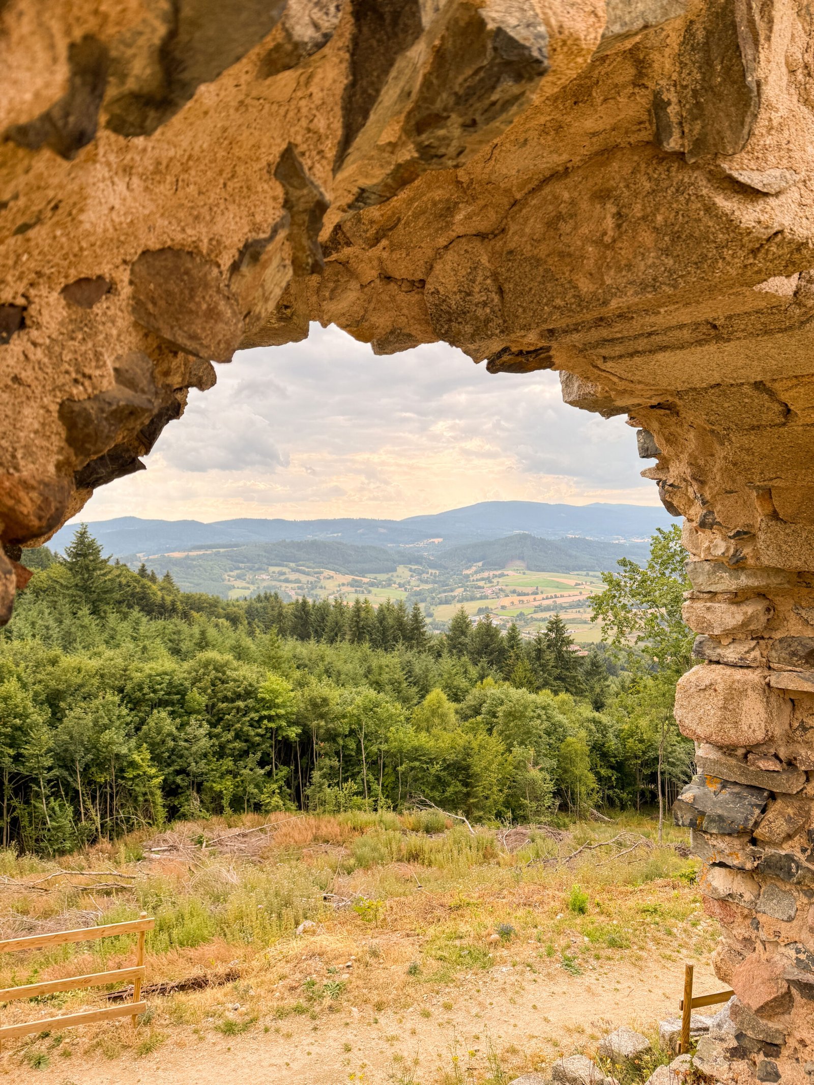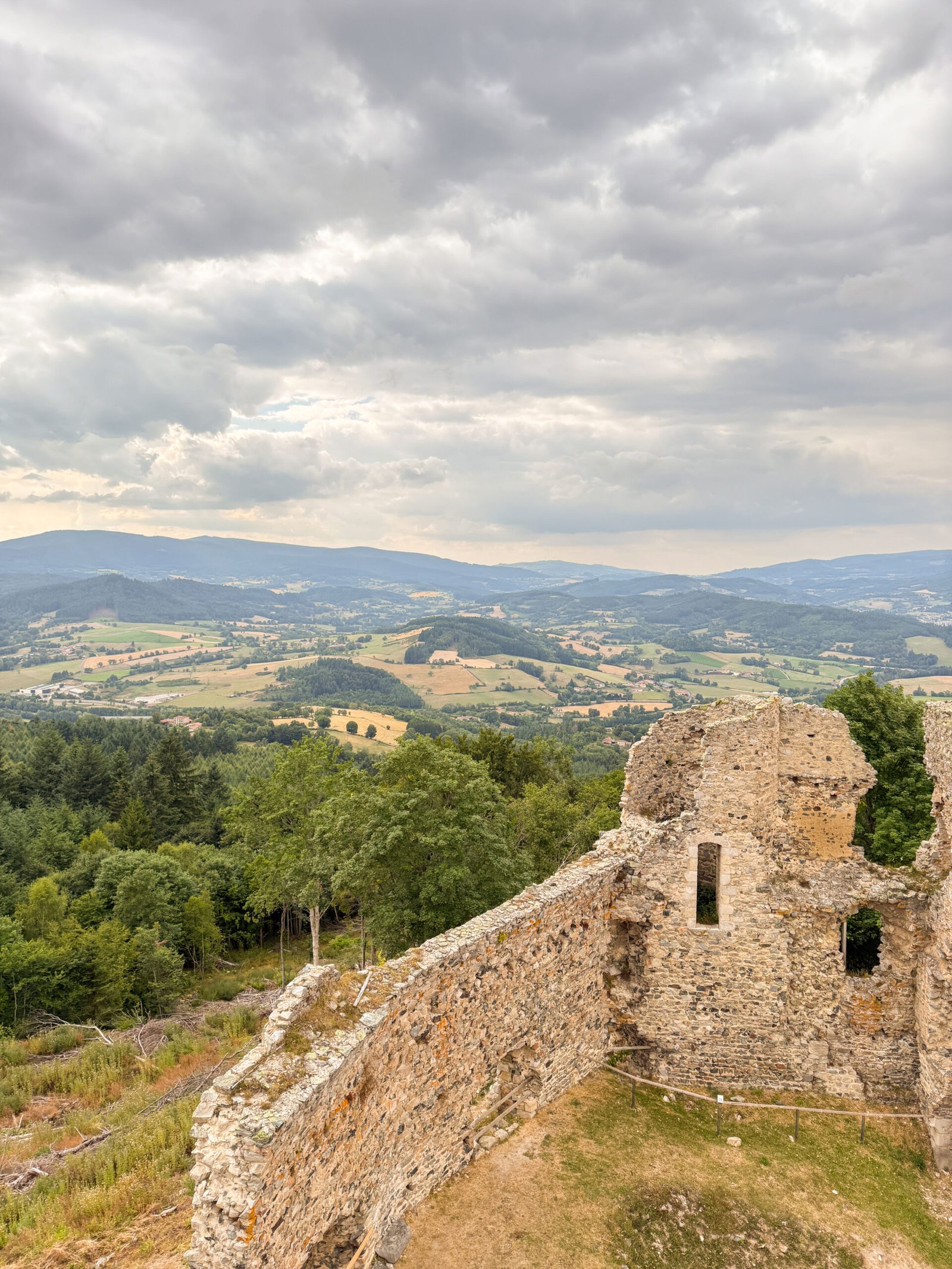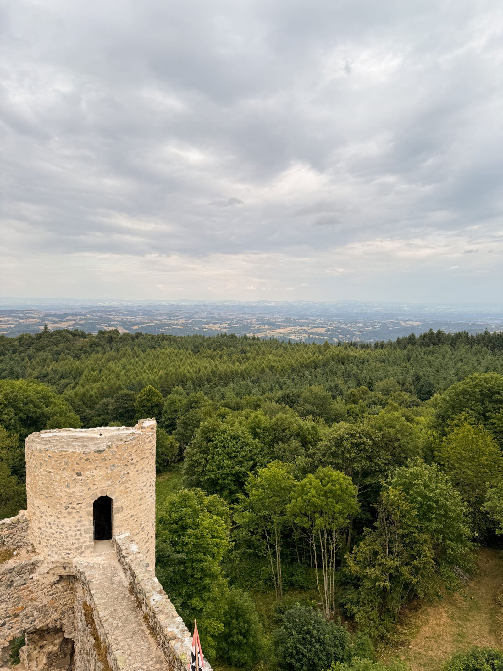 En fin de journée, on a pris la voiture pour monter au château d’Urfé, à quelques minutes. Une vieille forteresse en ruine, posée sur une colline. La montée dans la tour se fait sans difficulté, et le point de vue est superbe : vallées, forêts, et toits de pierre à perte de vue. Sans le savoir, nous y étions le jour de la fête du château, quelques artisans vendaient leurs produits. Nous sommes revenus avec du pain directement cuit dans le four du château.